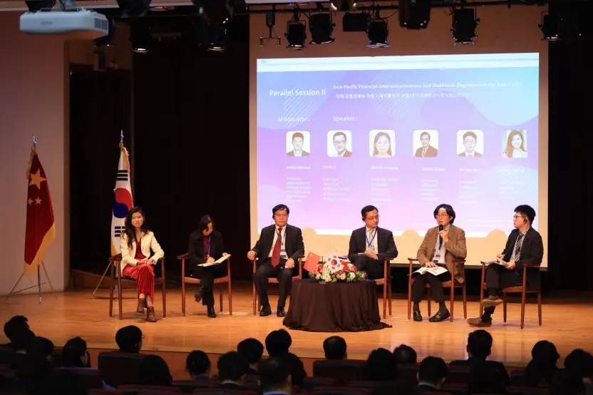 5个圆桌会议,分别围绕“全球经济秩序重组与亚太地区的战略”“亚太金融联动与亚太稳定币监管”“亚太制造业发展与区域供应链重组”“亚太地区的可持续合作与发展”“中韩产业协作发展”五大核心议题展开。中韩专家学者积极参与各环节讨论,现场交流热烈。学者们聚焦全球经济变革下的亚太机遇,深入探讨RCEP深化、供应链韧性建设、绿色低碳合作、中韩产业协同等关键方向,为区域经济发展建言献策。
