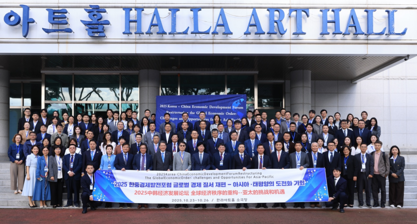 20251024日,2025中韩经济发展论坛在韩国济州岛开幕。本届论坛以全球经济秩序的重构——亚太的挑战和机遇为主题,立足世界格局深度调整、全球不确定性显著上升的宏观背景,系统探讨亚太地区如何应对单边主义抬头、全球供应链波动等下行风险,并依托区域一体化进程与创新驱动培育新的发展动能。北京大学市场经济研究中心同时与多家中韩机构一道,共同协办本届论坛。北京大学市场经济研究中心主任秦雪征教授应邀出席论坛,并在学术交流环节发表开幕式致辞。