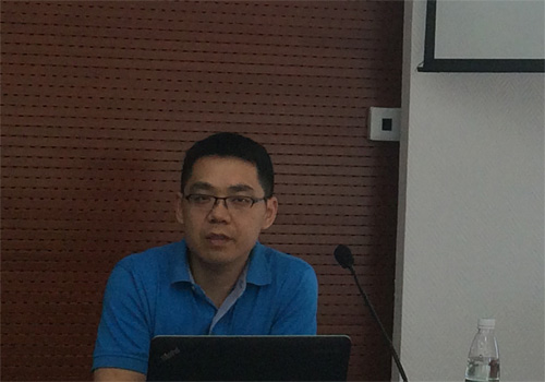 (图一:何剑钢先生演讲中)